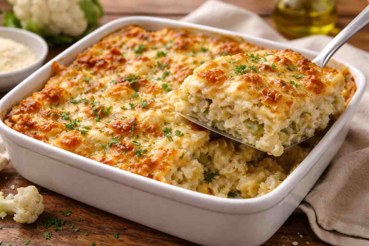 È ideale in inverno, quando il cavolfiore è di stagione e costa anche meno. Ed è una di quelle ricette che puoi preparare in anticipo, infornare all’ultimo e servire con la tranquillità di sapere che verrà spazzolata.